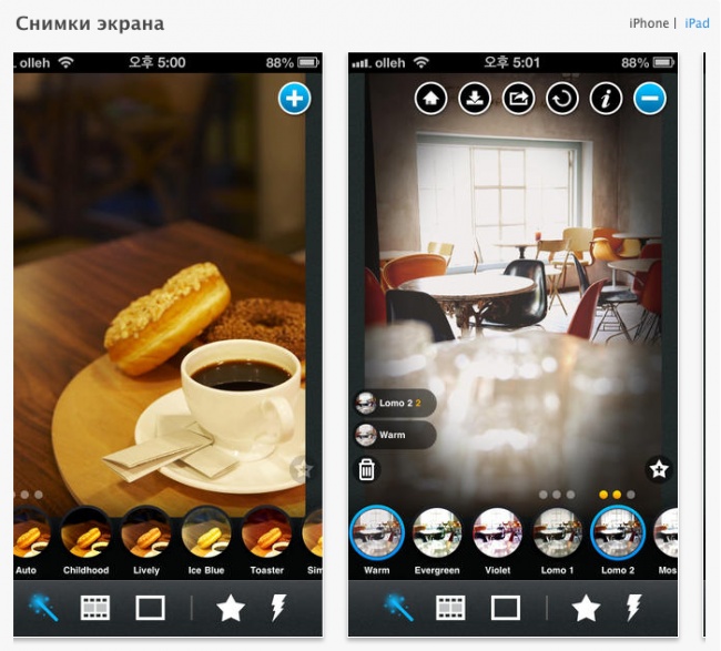 Плюсы этого приложения – скорость работы и приятный интерфейс. Оно радует и множеством эффектов, рамок и необычных фильтров. А полная версия, предоставляющая доступ к сотне эффектам, рамочкам и текстурам, обойдется недорого.