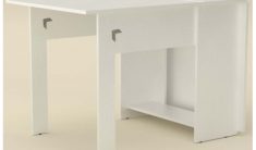При маленьком пространстве и желании сэкономить место, выбирайте небольшой откидной стол. Его размешают у стены и откидывают, когда работа закончилась.
