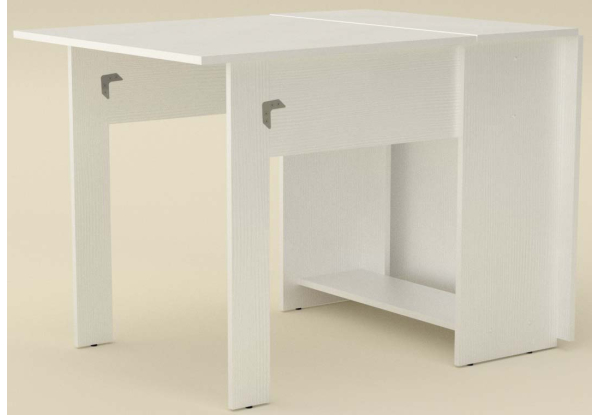 При маленьком пространстве и желании сэкономить место, выбирайте небольшой откидной стол. Его размешают у стены и откидывают, когда работа закончилась.