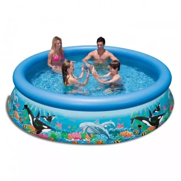 Места в бассейне семейного типа вполне хватит для того, чтобы вся семья могла устроить отдых на свежем воздухе и даже поиграть в мяч. Такая модель подходит для размещения как во дворе или на пляже, так и прямо на террасе. Надувная конструкция отличается мобильностью, позволяющей размещать бассейн от Intex там, где это необходимо, а места внутри хватает для комфортного пребывания как минимум 4-х человек. Все это делает бассейн семейного типа отличным местом для отдыха всех членов семьи любого возраста.
