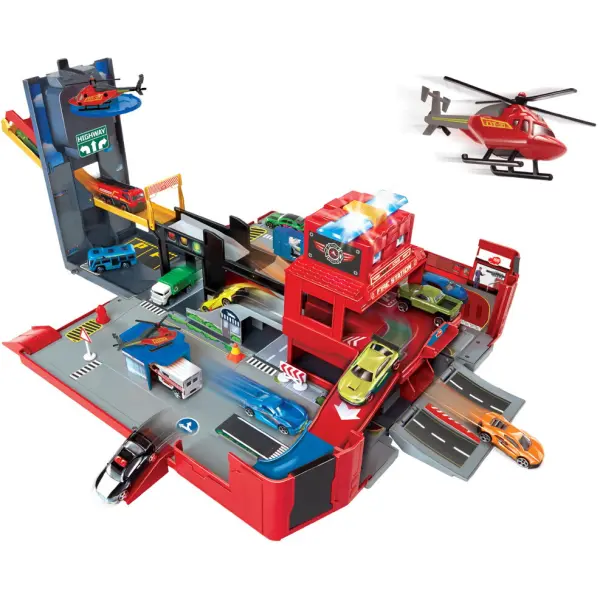 Dickie Toys представили игровой набор «Пожарная машина», предназначенный для детей возрастом от 3 лет. Он изготовлен из качественного пластика, а его внешний вид в собранном состоянии напоминает современный кейс. Он оснащен небольшими колесами и практичной ручкой для того, чтобы его можно было максимально комфортно транспортировать. Кейс с легкостью разворачивается и превращается в огромный город со своей инфраструктурой и разнообразными аксессуарами. Этот игровой набор имеет отличную детализацию, а также свето-звуковые эффекты, которые делают процесс игры более захватывающим.