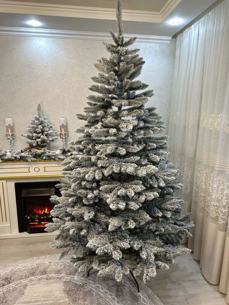Белая или заснеженная — фаворит для квартир в скандинавском или минималистическом стиле. Если вам ближе теплые огоньки, деревянные игрушки и аромат корицы — зеленое дерево с мягким, не пластиковым блеском создаст нужную атмосферу праздника. Если вы любите менять стиль декора каждый год, выберите модель нейтрального цвета — зеленого или заснеженного. Она подойдет к любому тренду.