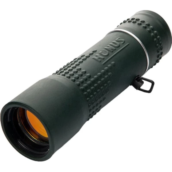 Panda 40×60 — охотничий монокуляр, который не подведет любителей активного отдыха. Тут вам и прорезиненный корпус, защищенный от влаги и механических повреждений, и ремешок для руки. Последний поможет не утопить девайс, когда будете перебираться через ручей или карабкаться по мосту. Корпус монокуляра комфортно ложится в ладонь и не скользит. Увы, прибор не может похвастаться супермощной оптикой. Зато идеально подойдет, если для вас в приоритете компактность и бюджетность модели.