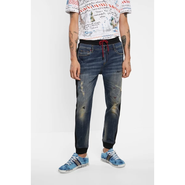 Если же нужно получить более явное осветление, тогда на помощь приходит старый-добрый наждак, которым обрабатывается ткань до создания нужного тона. Разумеется, делается это тоже на станках, потому как вручную достичь одинакового высветления на обеих штанинах крайне затруднительно.
