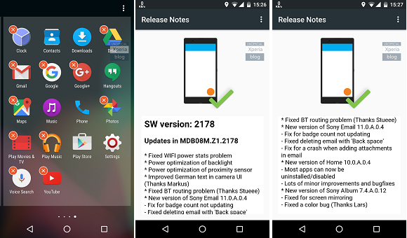 А именно, обновление приложений «Альбом» и «Почта» и новую версию лаунчера с возможностью удаления предустановленных приложений. Удалить теперь можно практически все, кроме Google Play Store и Hangouts. Конечно, «Телефон», «Загрузки», «Музыку» и «Настройки» удалить тоже не получится.