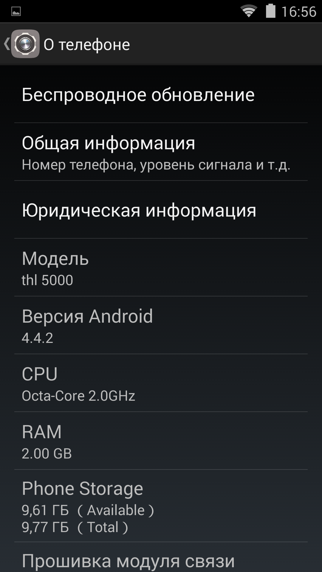 Смартфон THL 5000 работает под управлением операционной системы Android 4.4.2 Kit Kat, есть возможность беспроводного обновления (OTA).