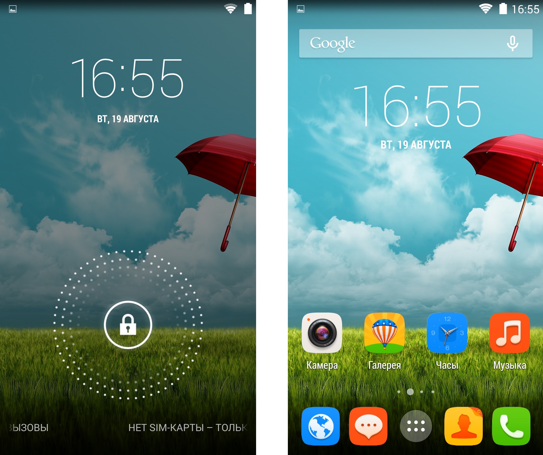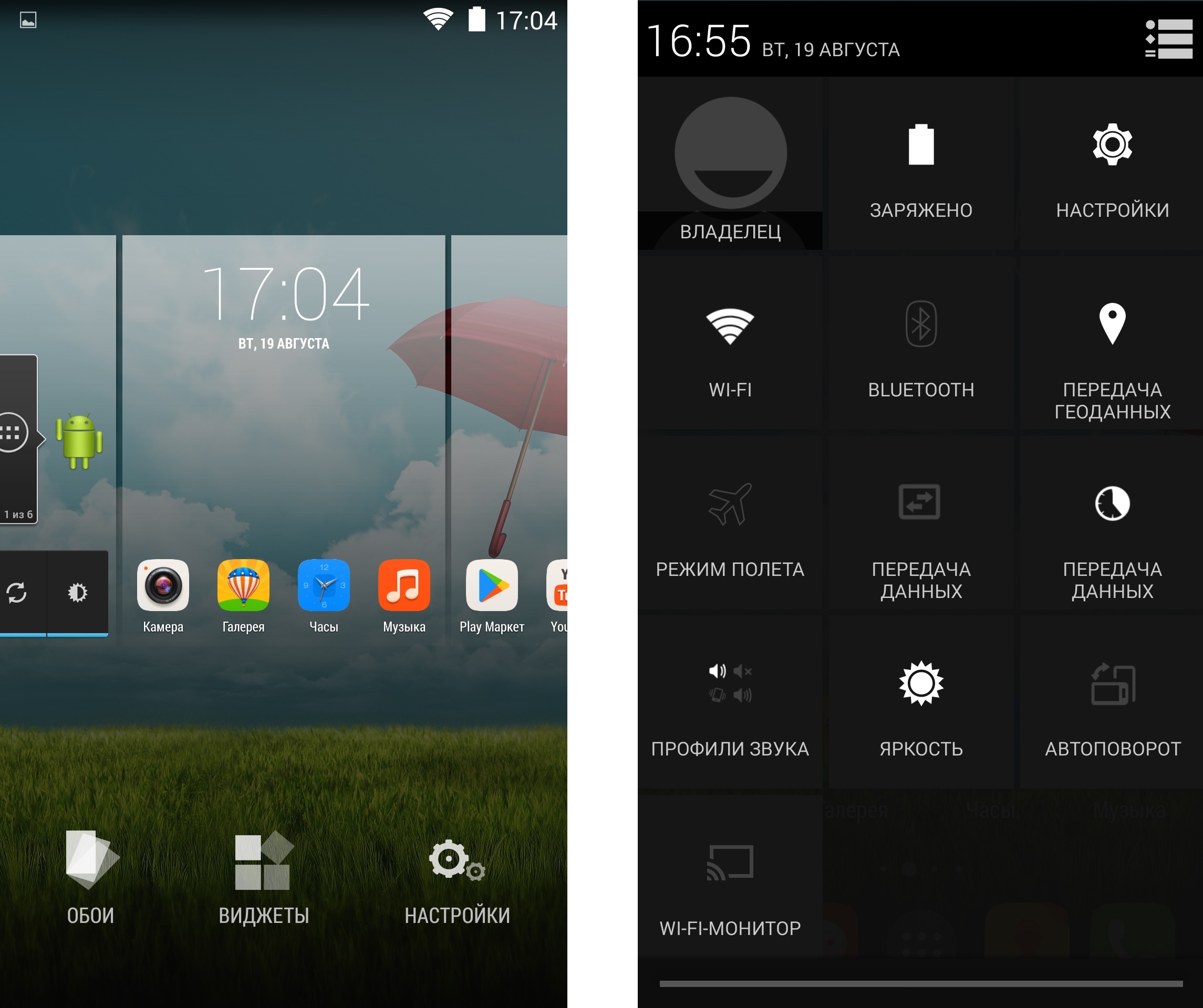 Интерфейс оболочки практически не изменён, в сравнении с оригиналом, единственное, что бросается в глаза – немного другие иконки. Цветовая гамма системы белая, шторка уведомлений, шрифты и другие мелочи стандартны, и немного напоминают оформление устройств линейки Nexus.
