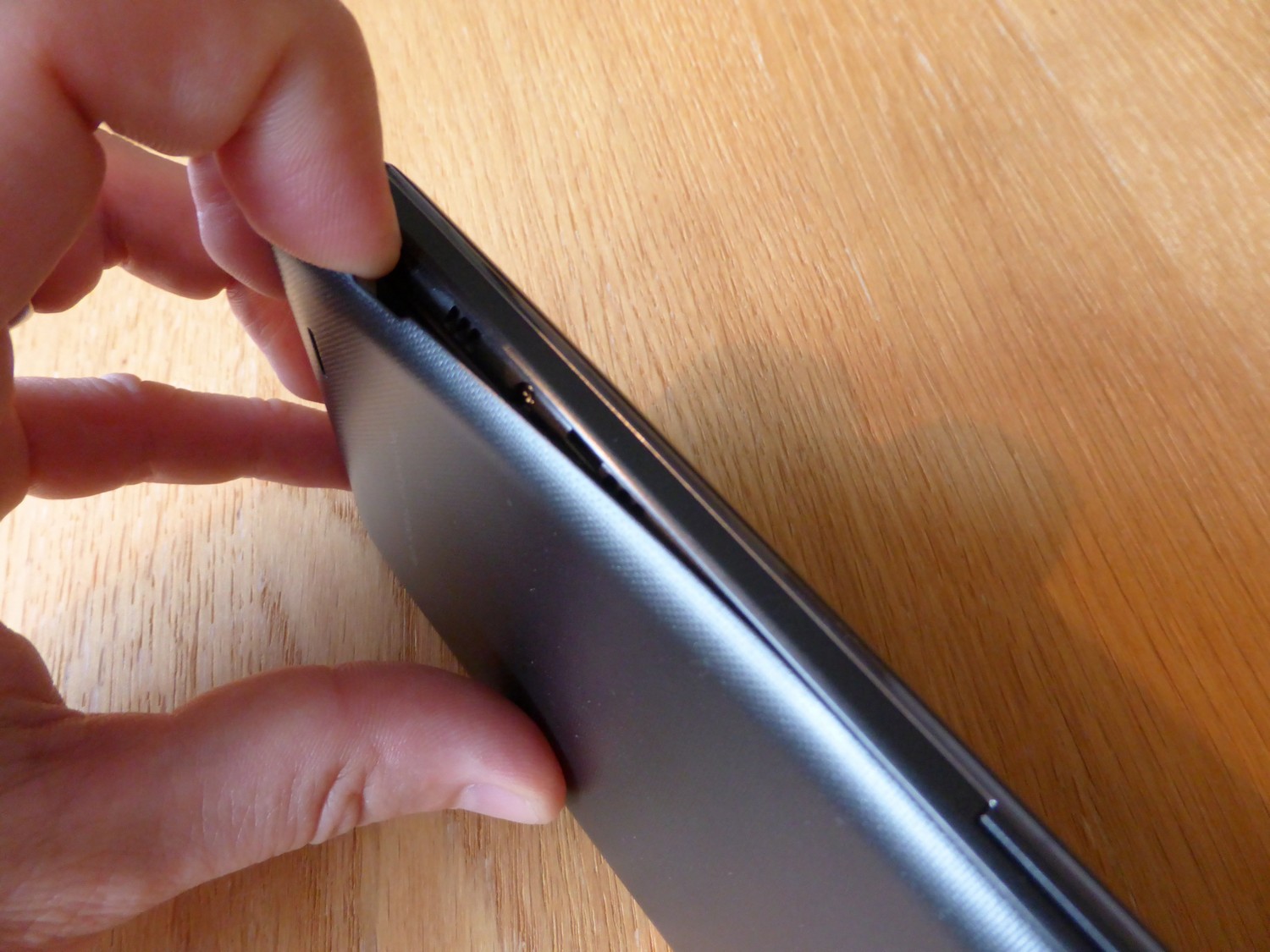 Задняя крышка смартфона съёмная, для того, чтобы её снять, необходимо просто поддеть крышку за выемку справа.