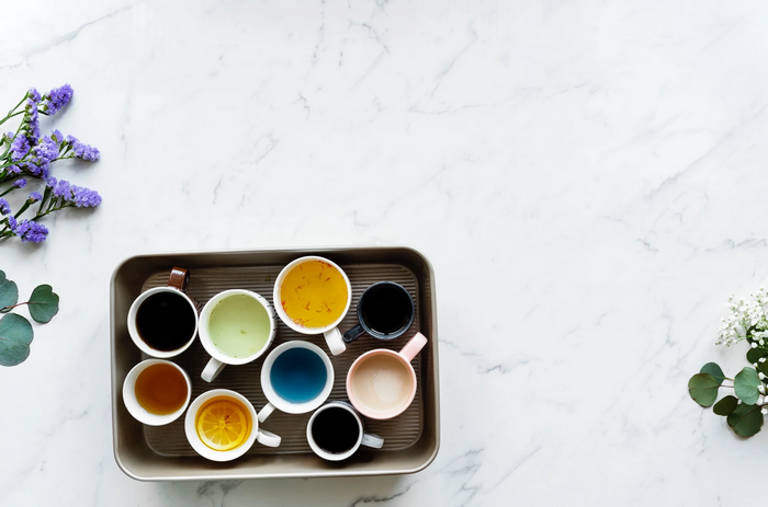Сделать картинку более гармоничной поможет крупный реквизит, поднос для чашек например.