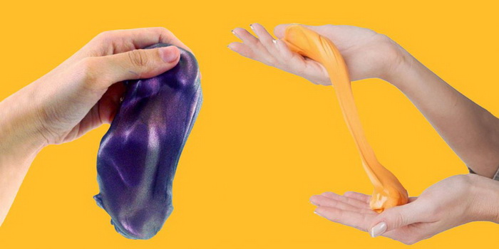 Рецептов много. Если у вас сложности с поиском ингредиентов, легко подобрать альтернативный состав. Например, сделать слайм без клея или без тетрабората натрия. Из обычного крахмала и шампуня тоже получится пластичная и тянущаяся масса. Разминаешь ее в руках и успокаиваешься.