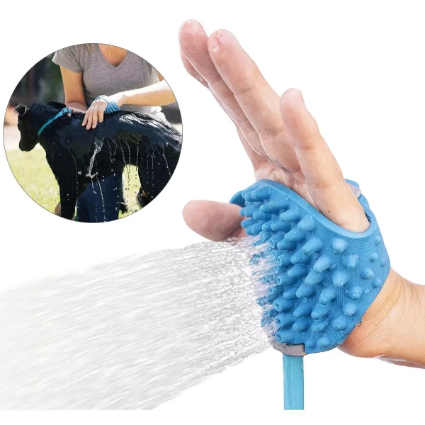 Перчатка для мойки животных Aqua изготовлена из качественного мягкого материала. Она подключается к садовому или душевому шлангу, обеспечивая удобное мытьё вашего питомца хоть на улице, хоть в ванной комнате. Устройство крепится на ладони при помощи застежки, тем самым освобождая руки для комфортного намыливания животного. Чтобы включить или выключить воду достаточно сжать руку в перчатке в кулак.