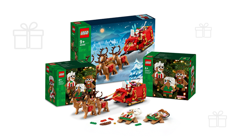Бери участь у розіграші конструкторів LEGO®: конструктора LEGO® Seasonal Санчата Санти (40499) (1 шт) та конструктора LEGO® Seasonal Оздоблення з імбирного прянику (40642) (2 шт).