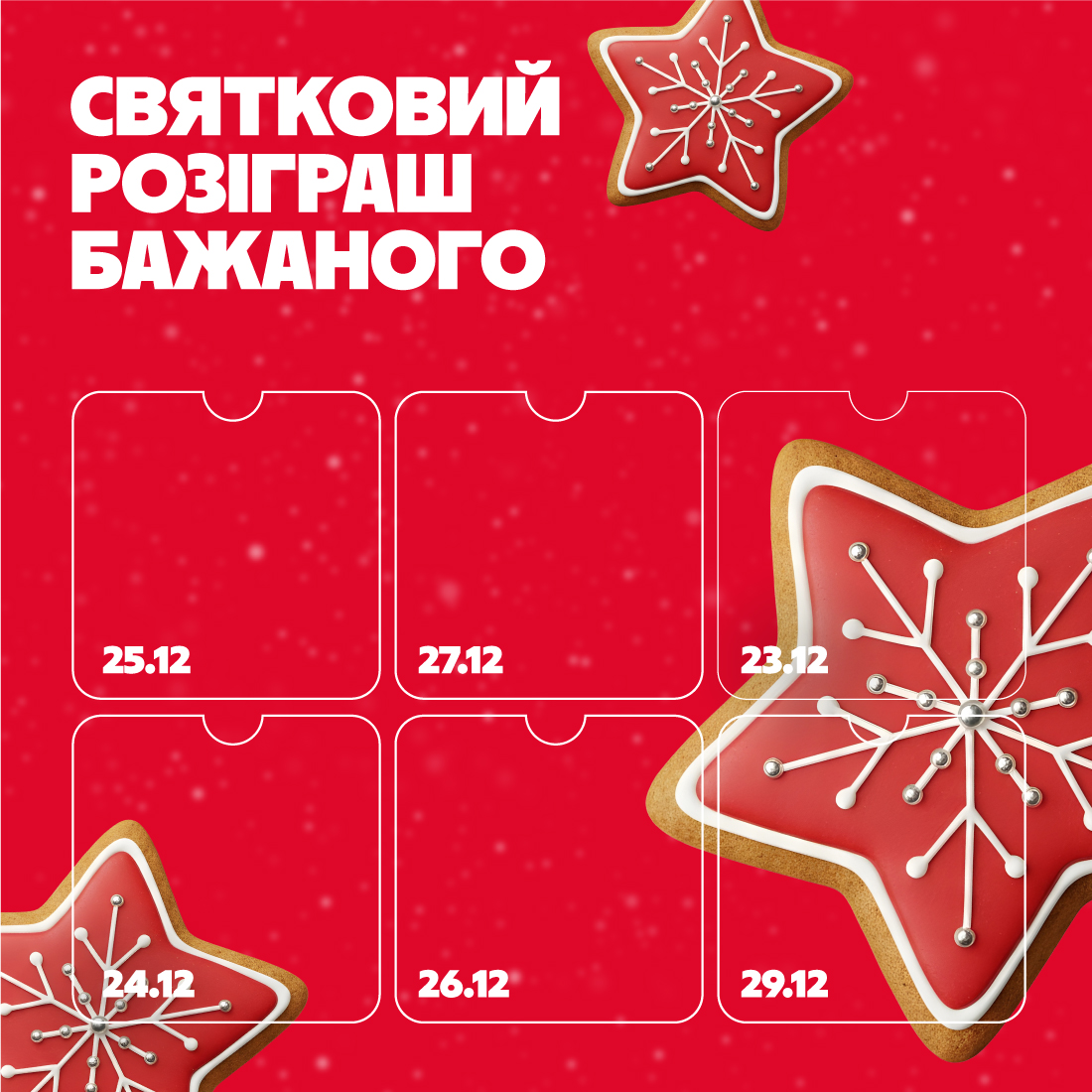 Розіграш діє з 19.12.2025 р. по 31.12.2025 р. на території України, окрім тимчасово окупованих територій, зони ООС та Автономної Республіки Крим, і проводиться в соціальній мережі TikTok. Щоб взяти участь у розіграші потрібно: