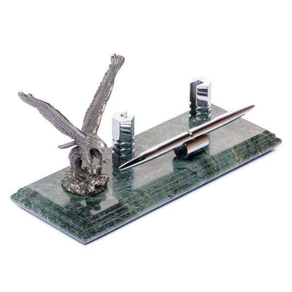 Кожному солідному директору потрібні презентабельні аксесуари, які будуть його оточувати. Красиві і зручні настільні набори демонструють успішність і статусність такого чоловіка, а також допомагають підтримувати порядок на робочому столі. Саме тому підставка для ручки з мармуру та металу – це гідний подарунок діловій людині.