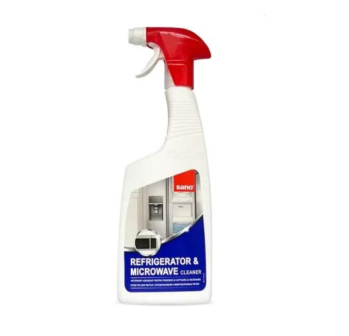 Ще один дієвий засіб — Sano Refrigerator Microwave. Завдяки зручному розпилювачу, склад наноситься на поверхню рівномірно. Він м’яко та ефективно справляється із жиром, брудом і неприємними запахами — без агресивних абразивів і розводів, залишаючи свіжий аромат. Обсяг 750 мл гарантує тривале використання. Детально описуємо кроки, як почистити мікрохвильовку за допомогою Sano Refrigerator Microwave Cleaner: