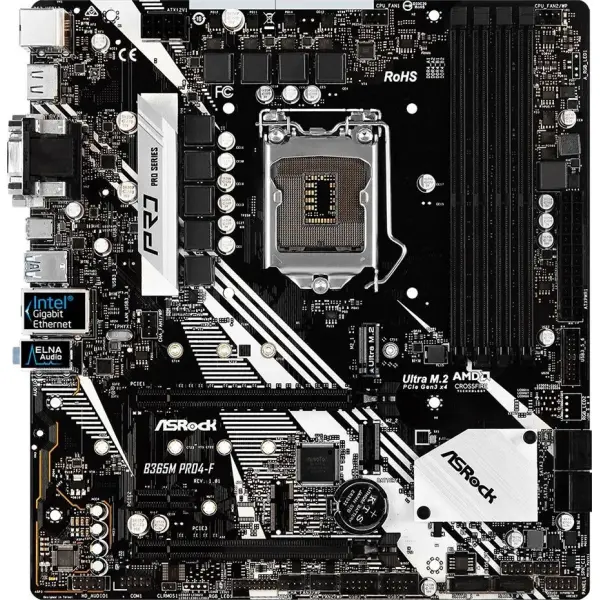 У материнської плати ASRock B365M Pro4-F є цілих три відеопорти – VGA, DVI, HDMI. Так що проблем з підключенням монітора або телевізора до цієї материнської плати не буде.