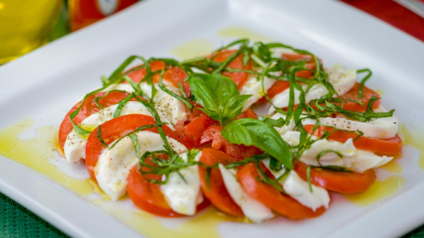 Сыр и помидоры нарежьте кольцами. Выкладывайте ингредиенты на тарелку, чередуя: томат, моцарелла, базилик. Полейте оливковым маслом, приправьте специями, а для большей выразительности добавьте несколько капель бальзамического соуса. Если думаете, что приготовить на ужин быстро и вкусно — выбирайте это блюдо. Оно легкое, всегда выглядит элегантно и занимает минимум времени.