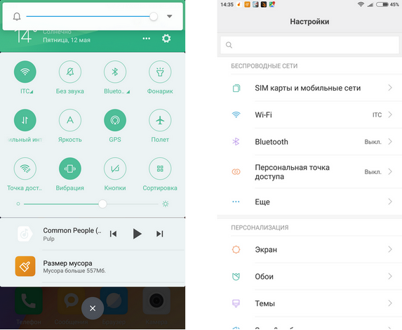 Операционная система и интерфейс Android 7.1.1 (Nougat) с интерфейсом MIUI 8.0